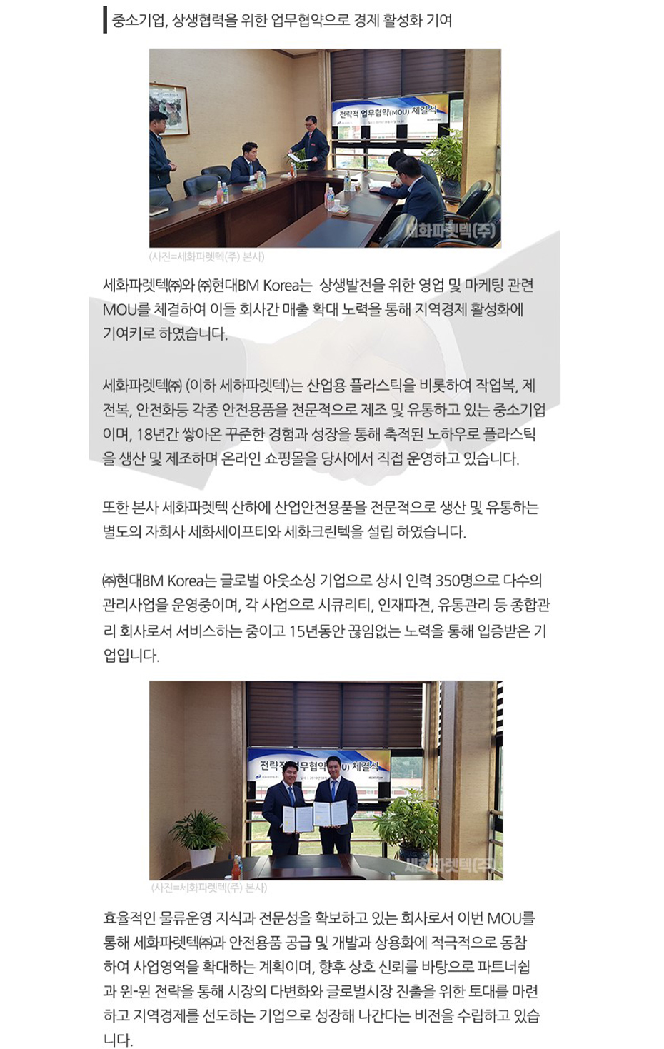 ¼¼ÈÆÄ·¿ÅØ(ÁÖ) X (ÁÖ)Çö´ëBM Korea ¿µ¾÷¹× ¸¶ÄÉÆÃ 'MOU ü°á'
