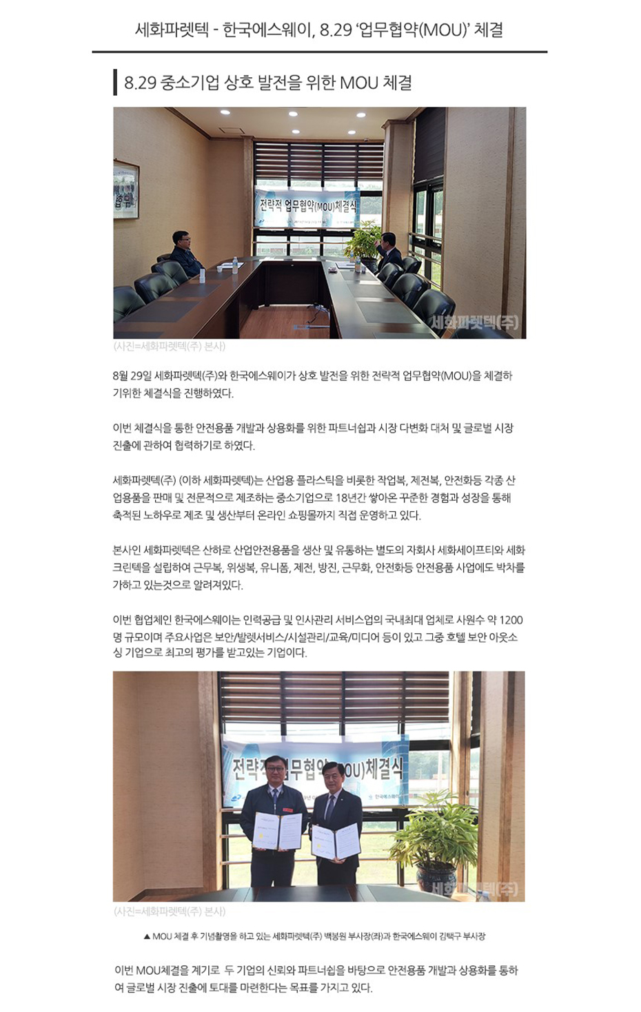 ¼¼ÈÆÄ·¿ÅØ(ÁÖ) X Çѱ¹¿¡½º¿þÀÌ '¾÷¹«Çù¾à MOU ü°á'